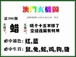 096期正版彩图挂牌:挂:15 爆:蛇 挂牌成语:东鳞西爪 挂牌出肖:鸡马龙鼠蛇狗